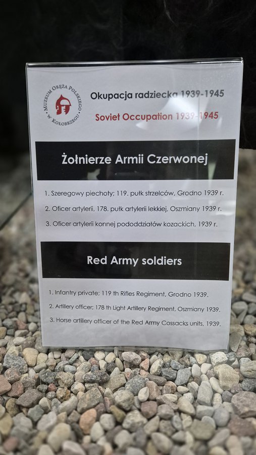 Na wystawie stałej "Dzieje Oręża Polskiego" naszego muzeum znaleźć można sowieckie umundurowanie z początku okresu okupacji naszej Ojczyzny. Prezentujemy między innymi szeregowego piechoty 119. pułku strzelców, oficera artylerii 178. pułku artylerii lekkiej, czy oficera artylerii konnej pododziałów kozackich, którzy w 1939 roku wkroczyli do wschodnich województw zdradzonej Rzeczypospolitej.